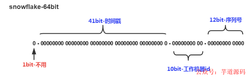 时间部分:41bit作为毫秒数,大概可以使用69.7年