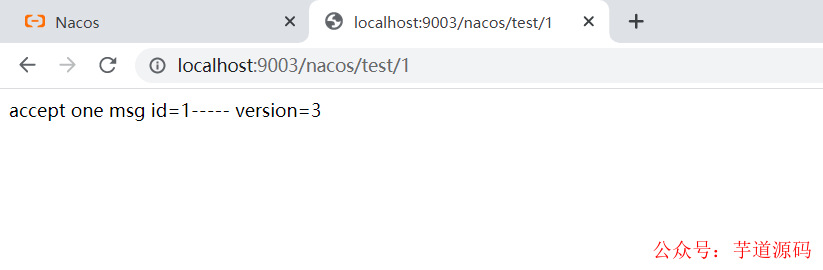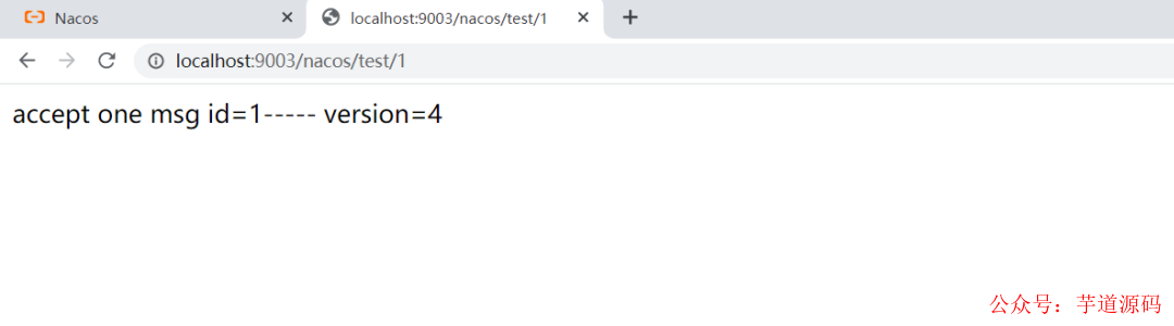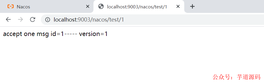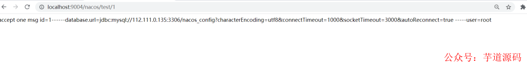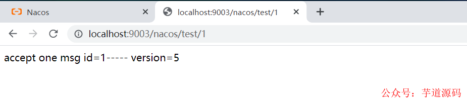 上面配置完毕,启动nacos-config-share这个项目,访问:http://localhost:9003/nacos/test/1,结果如下图: