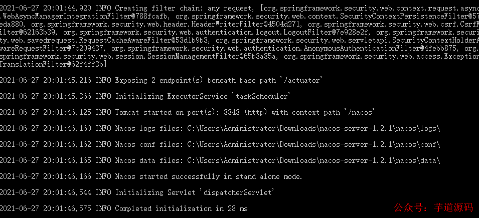 由于作者本地是windows,直接双击startup.cmd启动项目,出现以下界面则启动完成: