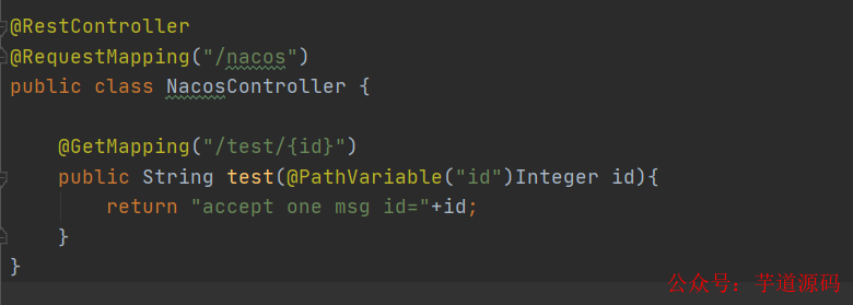 nacos-provider作为服务提供者注册到nacos中,肯定需要提供个服务来供消费者(nacos-consumer)调用,下面是随便写的一个接口: