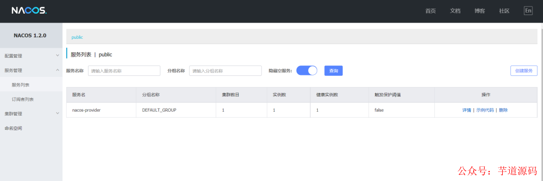 按照上面的5个步骤算是完成了最基本的一个服务,现在只需要启动nacos-provider这个服务即可。