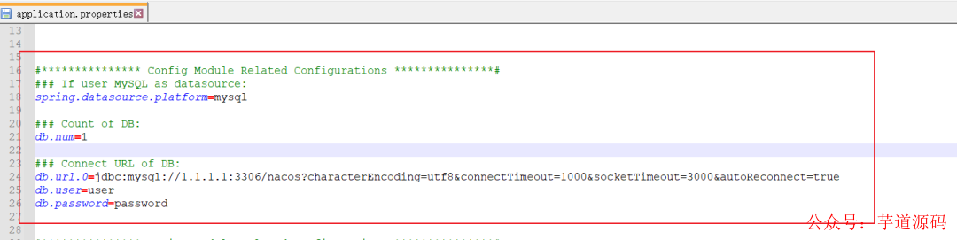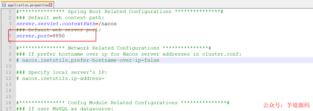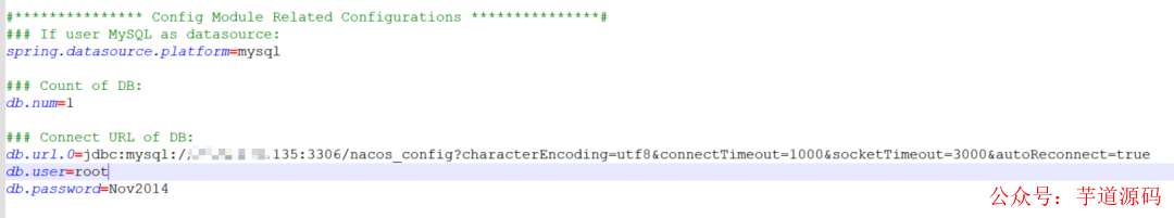 Nacos-server也是一个Spring Boot 项目,想要连接自己的数据库,当然要配置数据源了,那么在哪里配置呢?