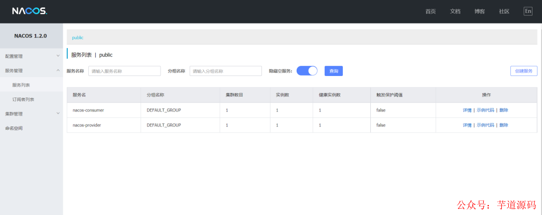 用过Nacos的开发者都说很爽,不用自己搭建服务,阿里给你准备好了服务,只需要启动即可;界面中英文都有,很适合初学者。