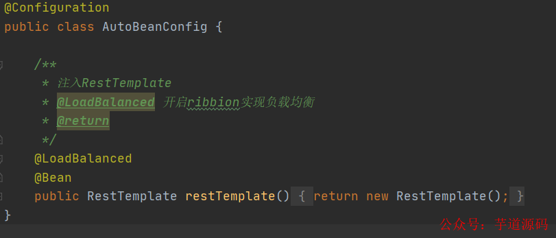 @LoadBalanced注解标注开启负载均衡,如下图: