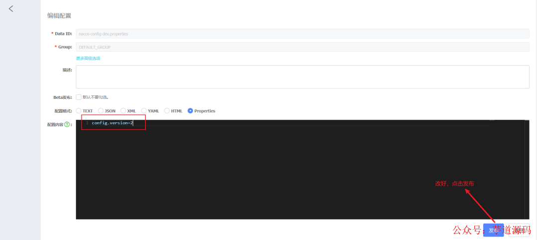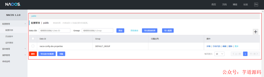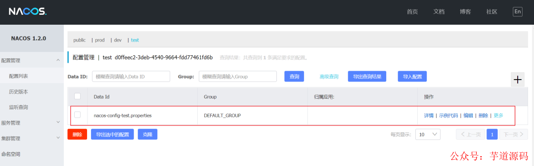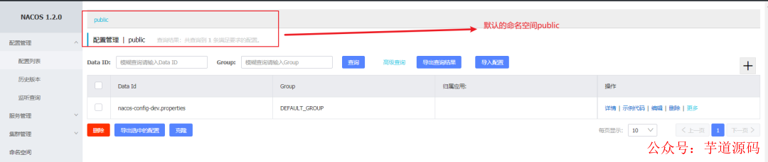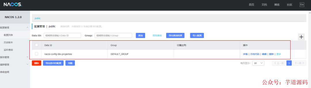 如何验证是否持久化呢?很简单,只需要创建一个配置,然后在his_config_info表中查看下是否存在即可,如下图: