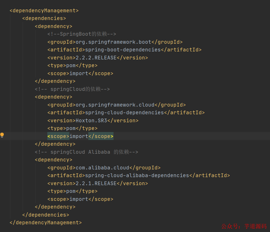 作者使用的是分模块的聚合项目演示,其中dependencyManagement依赖如下,对应着上文提到的版本: