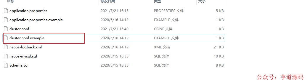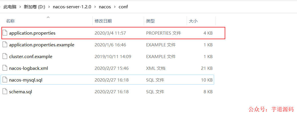 配置文件同样在Nacos-server中的conf目录下,如下图: