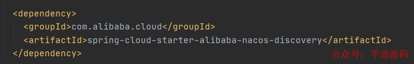 需要添加spring-cloud-starter-alibaba-nacos-discovery这个依赖,如下图: