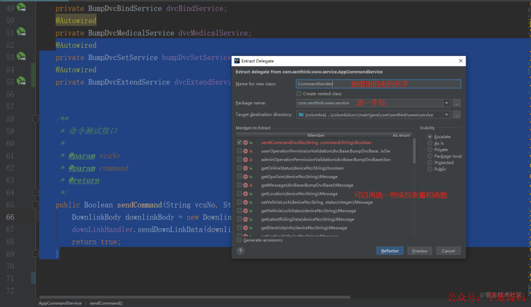 本文讨论了类过长带来的问题,如读不通、扩展困难和冗余代码,强调了代码重构的重要性。通过抽取冗余代码、转移成员变量和函数、抽取类等方法,可以改善代码结构。并提供了IDEA中进行重构的具体操作步骤,以帮助开发者提高代码可读性和可维护性。