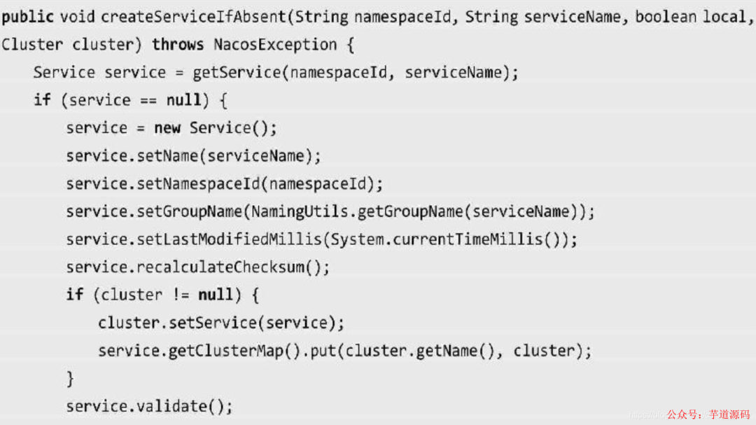 创建一个控服务(在Nacos控制台“服务列表”中展示的服务信息),实际上是初始化一个serviceMap,它是一个ConcurrentHashMap集合