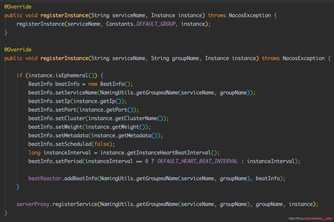 beatReactor.addBeatInfo()创建心跳信息实现健康检测, Nacos Server必须要确保注册的服务实例是健康的,而心跳检测就是服务健康检测的手段。serverProxy.registerService()实现服务注册
