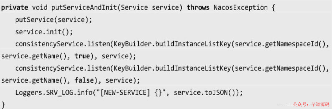 service.init ( ) 方法的如下图所示,它主要通过定时任务不断检测当前服务下所有实例最后发送心跳包的时间。如果超时,则设置healthy为false表示服务不健康,并且发送服务变更事件。在这里请大家思考一一个问题,服务实例的最后心跳包更新时间是谁来触发的?实际上前面有讲到, Nacos客户端注册服务的同时也建立了心跳机制。