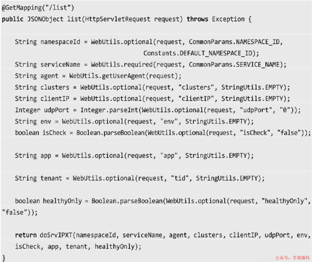 从请求参数汇总获得serviceName(服务名)和namespaceId(命名空间Id)