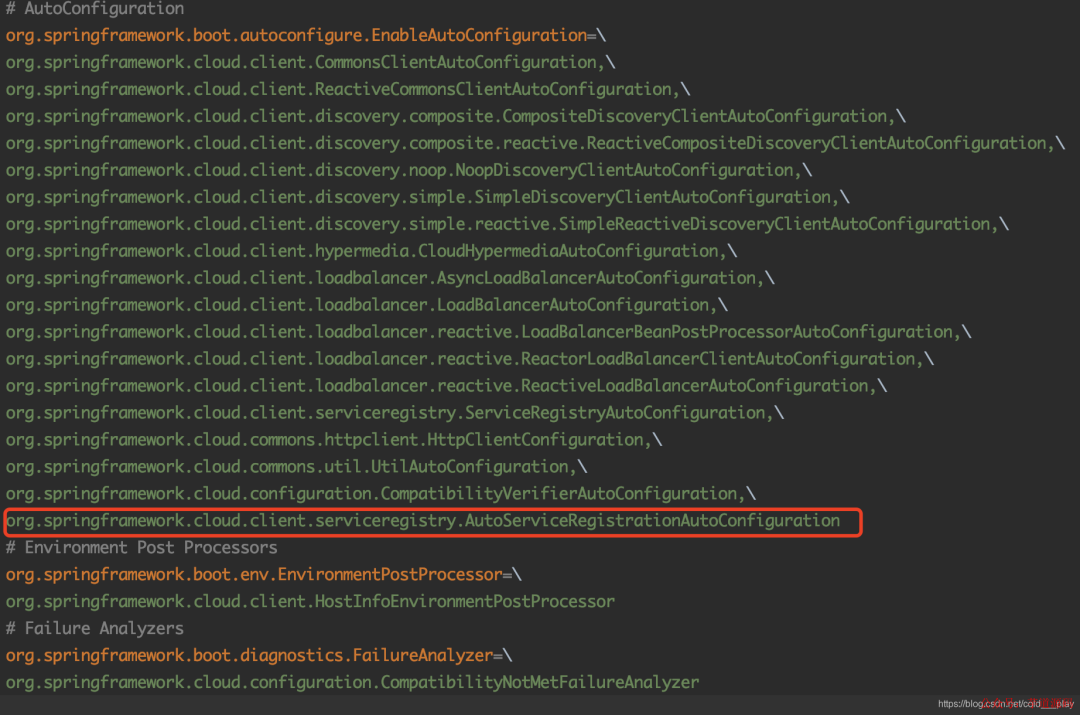 在spring-clou-commons包的META-INF/spring.factories中包含自动装配的配置信息如下: