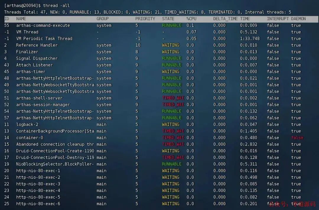 arthas:阿里开源的一款线上监控诊断工具,可以查看应用负载、内存、gc、线程等信息