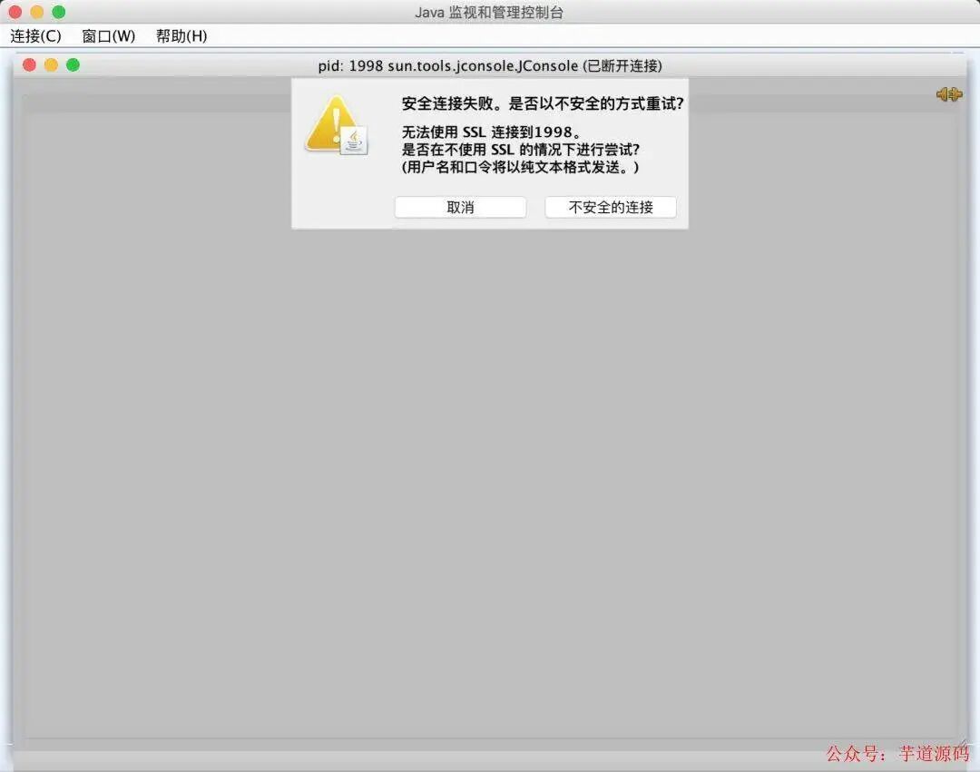 点击连接之后,可能会弹出如下的界面,选择“不安全的连接”即可。