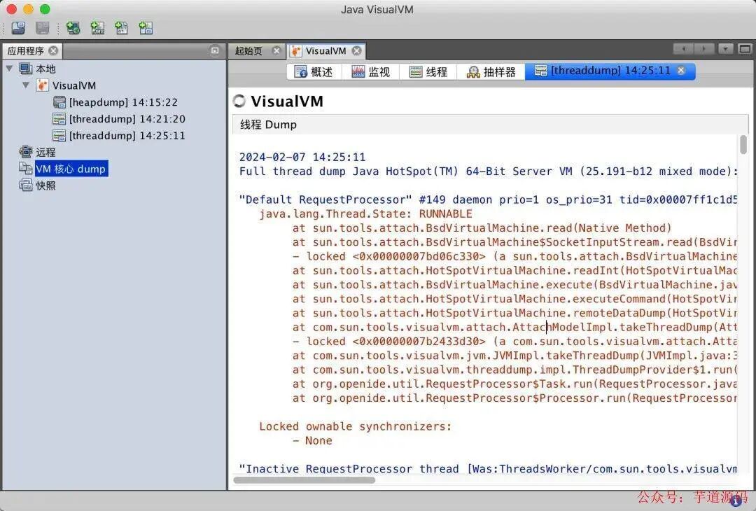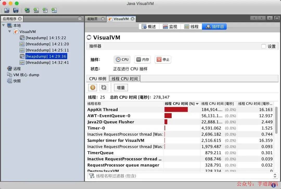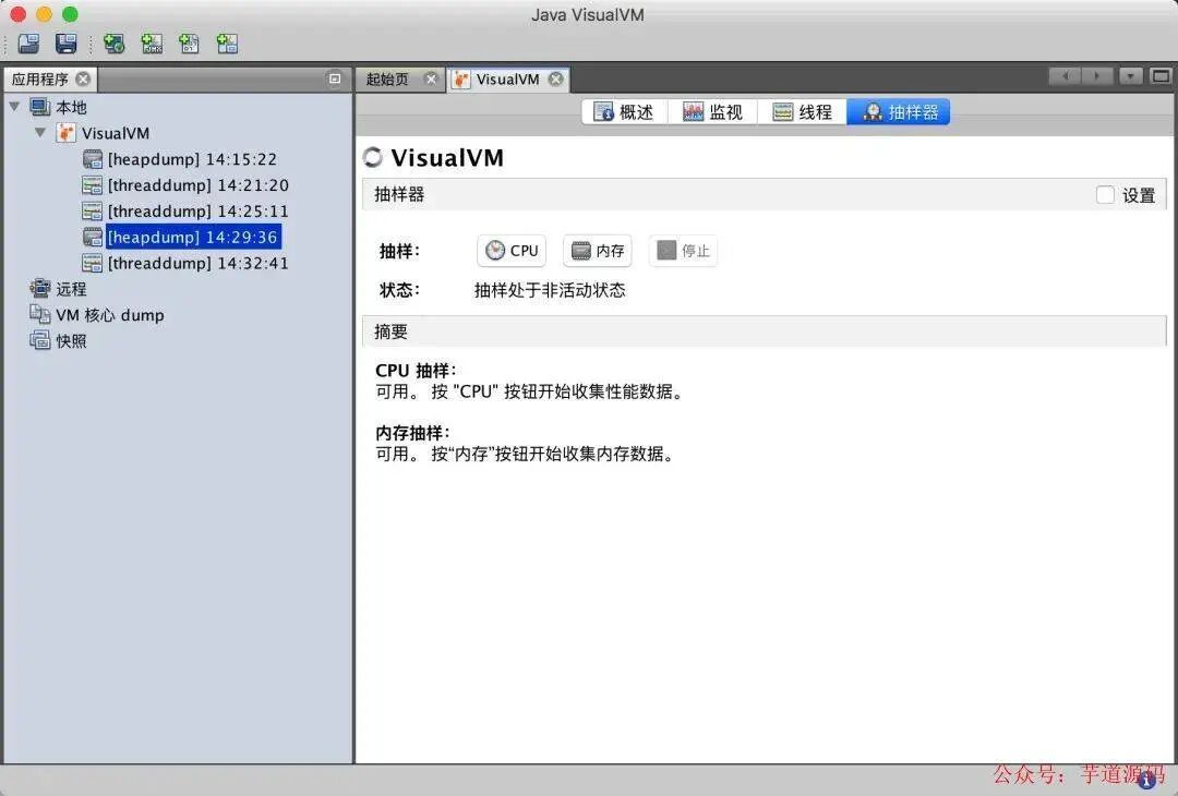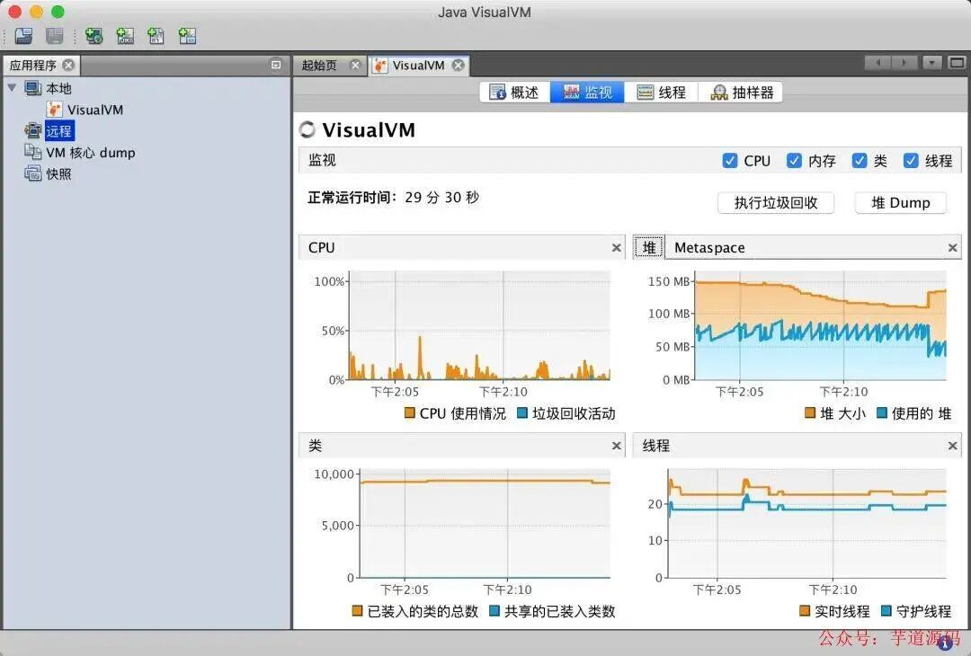 VisualVM 也是一款 JDK 自带的可视化监控工具,利用它不仅能够监控服务的 CPU、内存、线程、类等信息,还可以捕获有关 JVM 软件实例的数据,并将该数据保存到本地系统,以供后期查看或与其他用户共享,从 JDK1.6 开始加入。