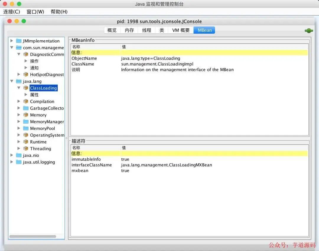 MBean 板块主要展示被管理的 Bean 的属性,方法等。界面如下。