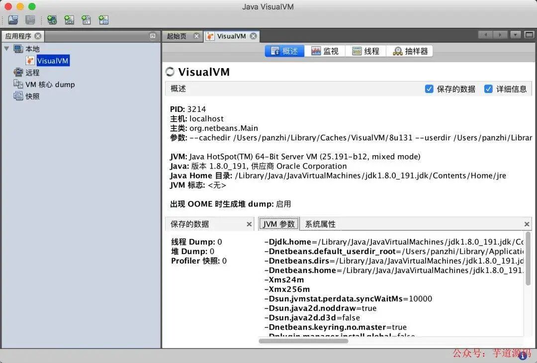 进入之后,就可以看到 VisualVM 相关的展示界面,例如概述、监视、线程、抽样器等板块。概述界面如下。