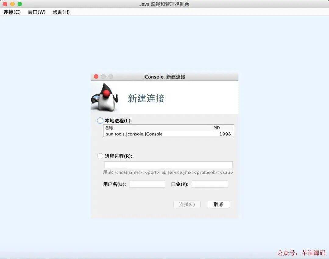 可以直接选择本地 JVM,也可以通过 JMX 方式连接远程 JVM。