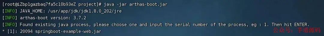 意思是发现有以下几个 Java 应用服务,请选择想要监控的进程,输入前面对应的编号,就可以开启进行监控模式了。比如我输入编号 1。