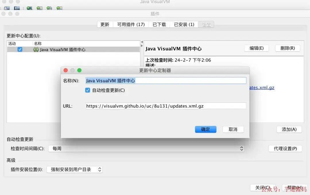 在 VisualVM 的菜单栏,点击“工具” -》 “插件”,便会弹出如下界面。