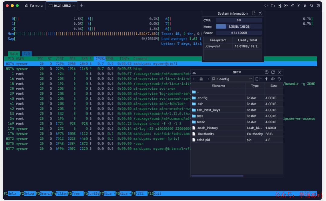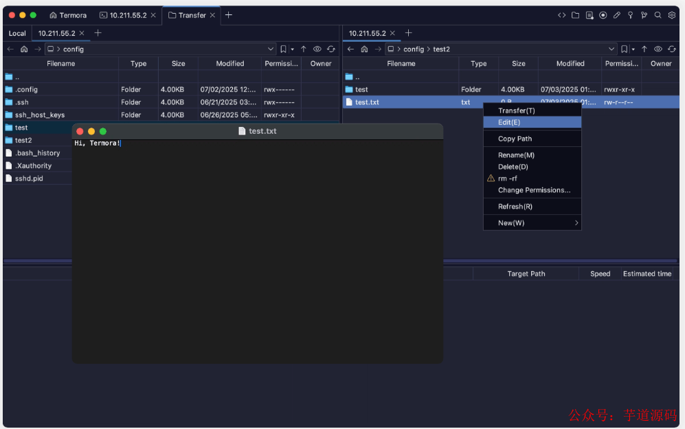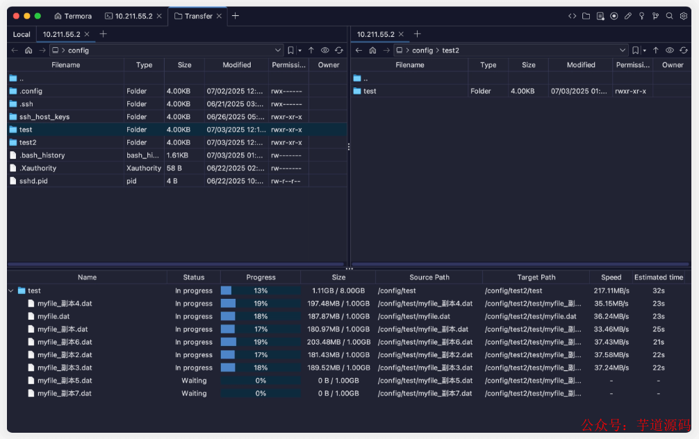 SFTP文件管理: 支持GUI操作,支持服务器间直传(A↔B)和递归文件夹传输