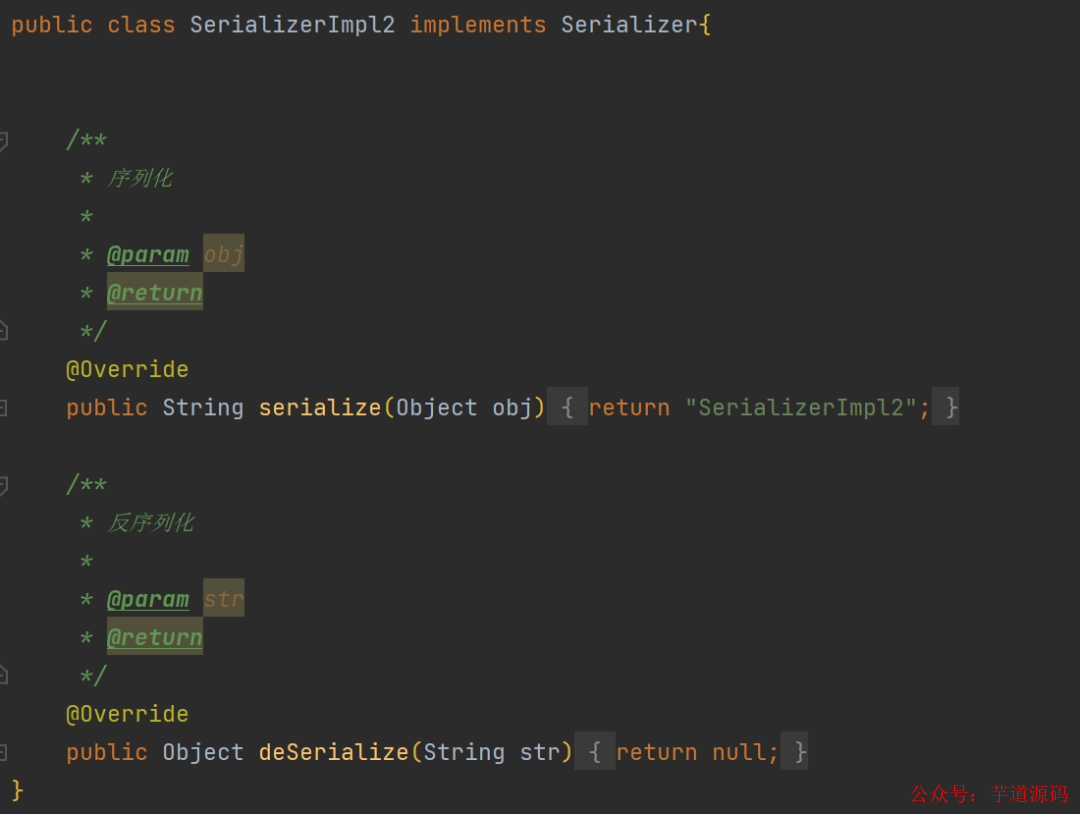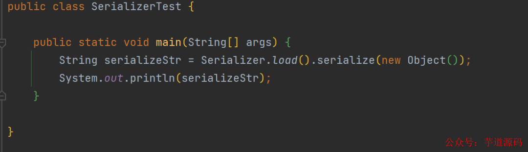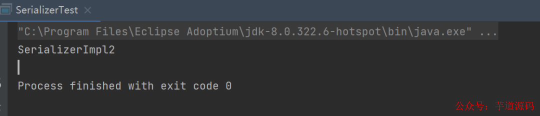我们通过 load 方法加载了配置文件中配置的第一个实现类(也就是 SerializerImpl2),并调用了它的 serialize 方法,输出的内容是: