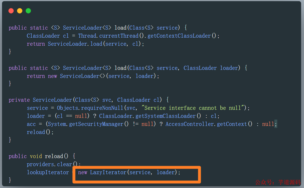 简单来说,load 的核心逻辑就是使用指定的类型和当前线程绑定的类加载器(ClassLoader)实例化了一个 LazyIterator 对象,并清除 Provider 缓存。