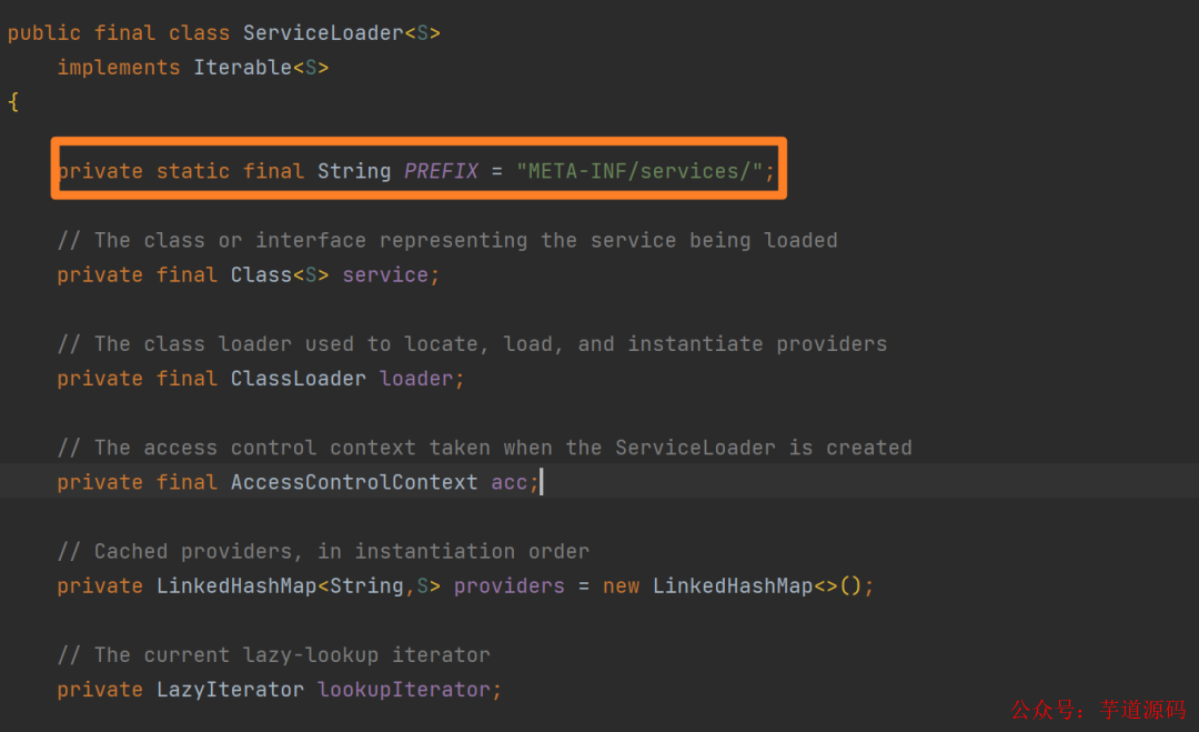 再往下,可以看到一个熟悉的常量定义 META-INF/services/: