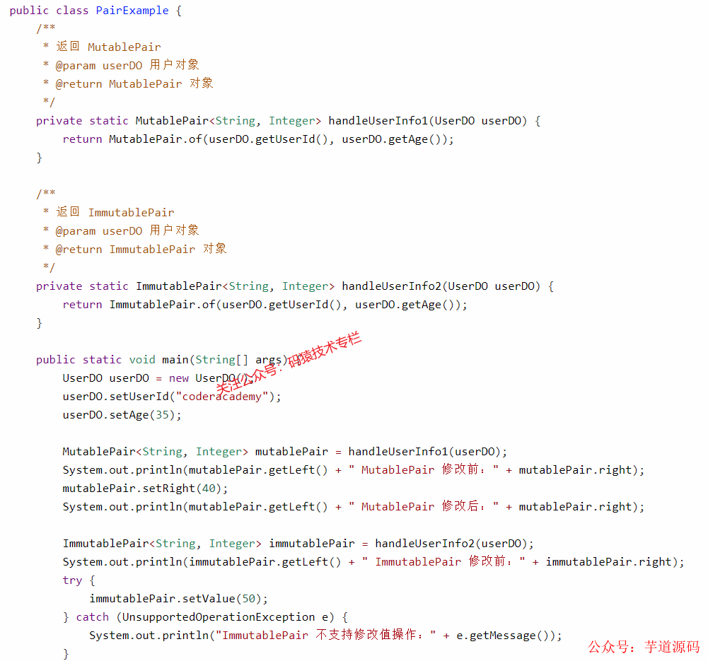Pair 类有两个重要的子类:ImmutablePair 和 MutablePair,下面我们来详细了解一下这两个子类。