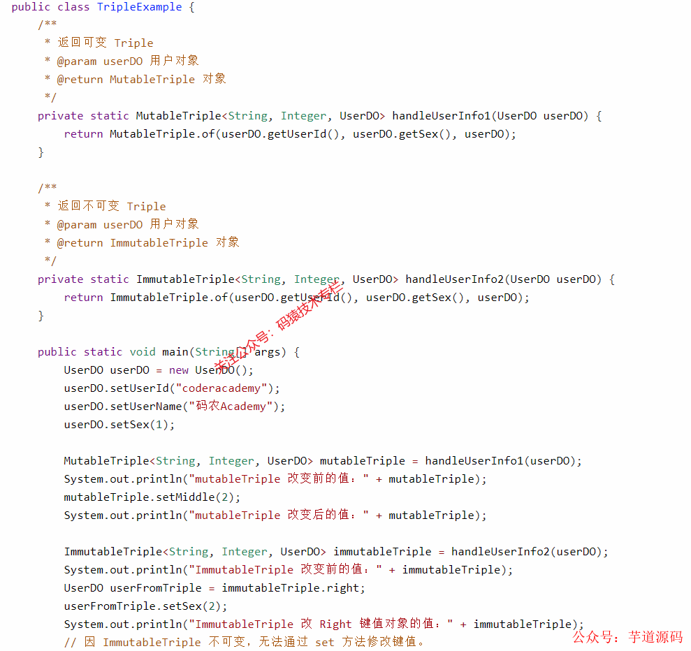 Triple 类有两个子类:可变的 MutableTriple 和不可变的 ImmutableTriple。