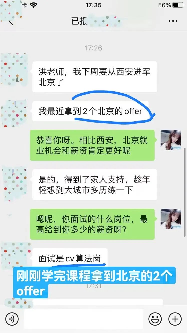 1、2025年6月继续接喜报啦,又一位学员转型成功进入小红书做算法工程师。这位童鞋也是通过朋友推荐加我微信的,当时他被裁员2个月了没找到工作索性选择了自我提升,慢下来沉淀自己反而收获出奇的大。现在进入AI领域啦,涨薪翻倍,信心十足。