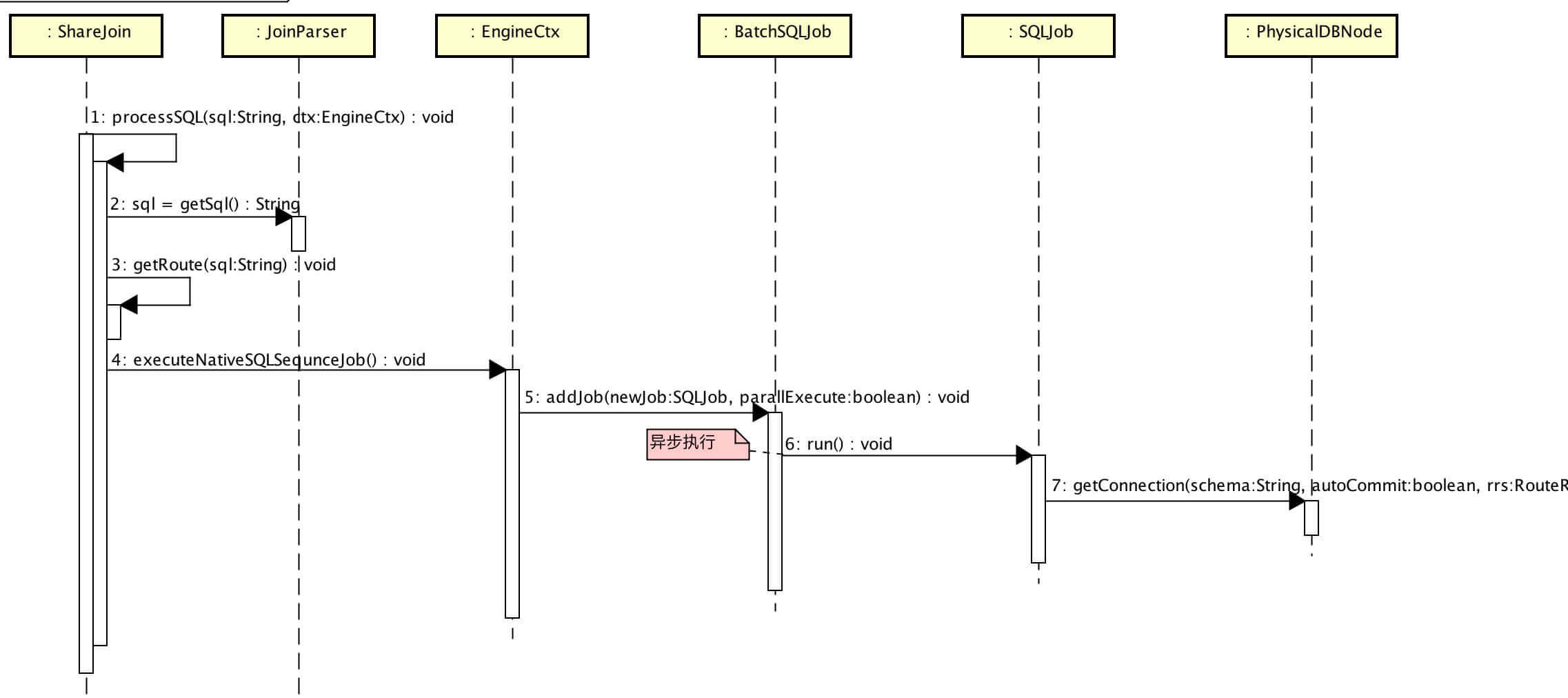 HintCatletHandler 获取注解对应的 Catlet 实现类,io.mycat.catlets.ShareJoin 就是其中一种实现(目前也只有这一种实现),提供了跨库两表 Join 的功能。从类命名上看,ShareJoin 很大可能性后续会提供完整的跨库多表的 Join 功能。