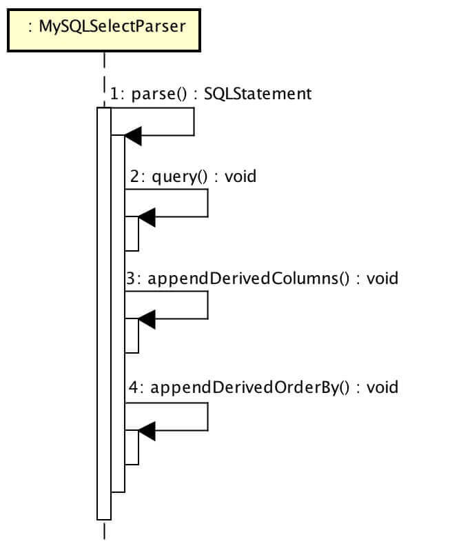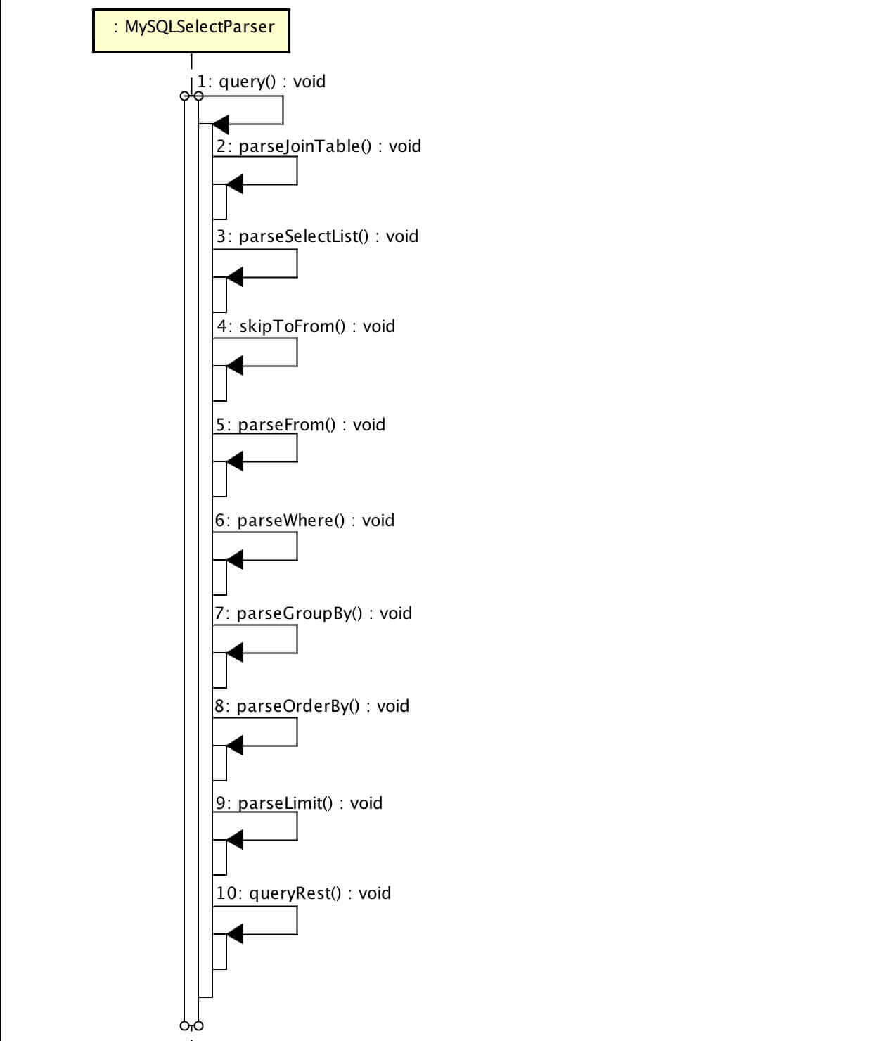 #parseOrderBy():对于 MySQL 查询语句解析器无效果,因为已经在#query()方法里面已经调用#parseOrderBy(),因此图中省略该方法。#customizedSelect():Oracle、SQLServer 查询语句解析器重写了该方法,对于 MySQL 查询解析器是个空方法,进行省略。有兴趣的同学可以单独去研究研究。