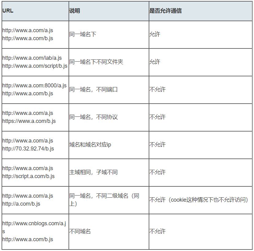 第二:在跨域问题上,仅仅是通过“URL的首部”来识别而不会根据域名对应的IP地址是否相同来判断。“URL的首部”可以理解为“协议, 域名和端口必须匹配”。