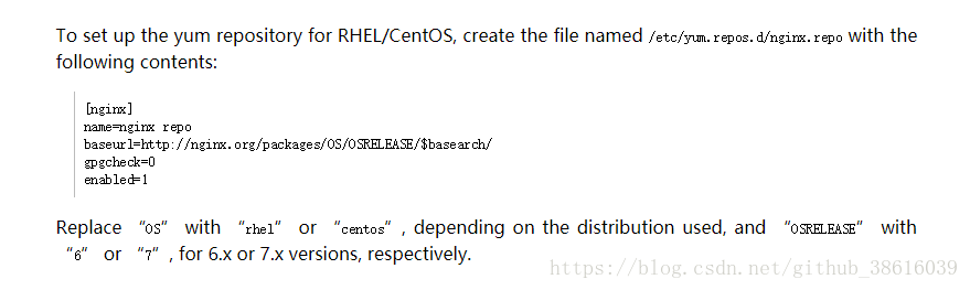 输入以上命令进入文件编辑,完成相关配置,对于yum源的配置官方文档是这么说的:
