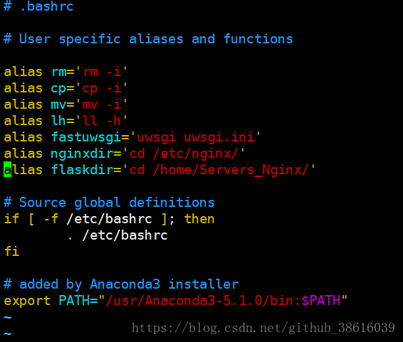 其他的配置没什么好说的,英语稍微有点水平的都能看懂写的什么,重点在http和socket上,这两个配置是不能同时存在的(起码在我印象中),http是用来使外网能直接访问Uwsgi的,而socket是用来和Nginx通信的,Nginx获取到外网的请求后,就通过这个地址转发给Uwsgi处理,socket的用法在下面Nginx的配置文件中会看到.