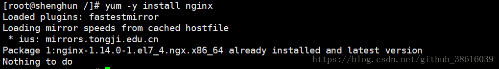 回车以后会自动安装nginx,稍等一会,等屏幕出现successful install nginx就可以了,由于我这里已经安装成功了,所以是这样的: