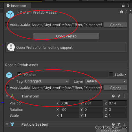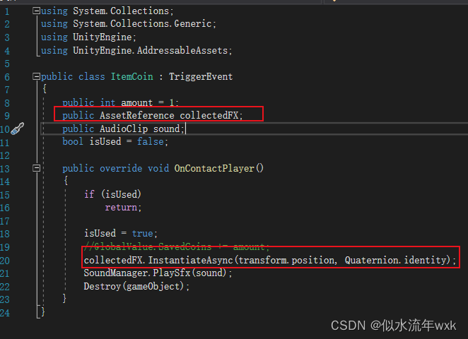 (2)通过AssetReference加载资源,如下图,把勾选的资源挂在脚本的 AssetReference类型下,就可以通过这种方式实例化