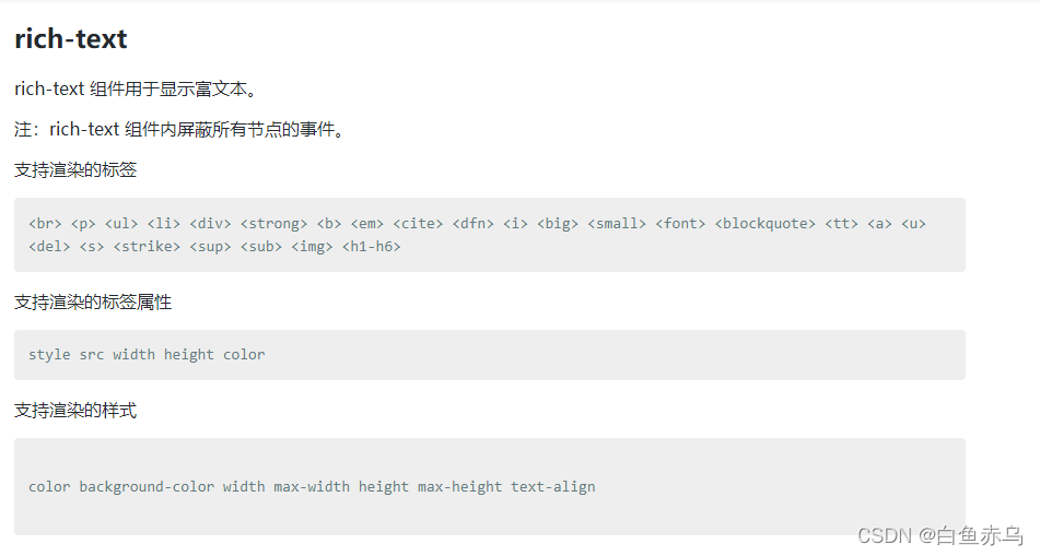 由于通知公告的内容是在后台通过富文本编辑器编辑的内容,其中会有样式布局的元素,不再是单纯的文字展示,这里使用了AVM中的rich-text组件,这个组件能很好的支持一些html元素标签,能完美的把富文本编辑的内容展现出来。