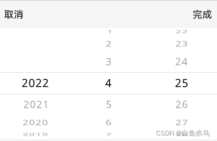 组件内的年份是取得举例今年100年以内的年份,可根据时间需要进行扩容或缩减,月份是12个月固定的,每月的天数,根据所选年份和月份进行获取。默认设置当前日期。