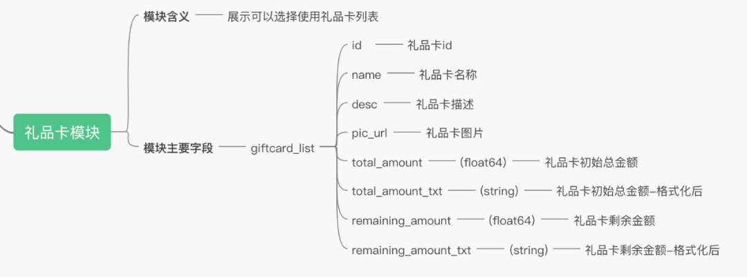 | giftcard_list | array | total_amount_txt | string | 礼品卡初始总金额-格式化后 |