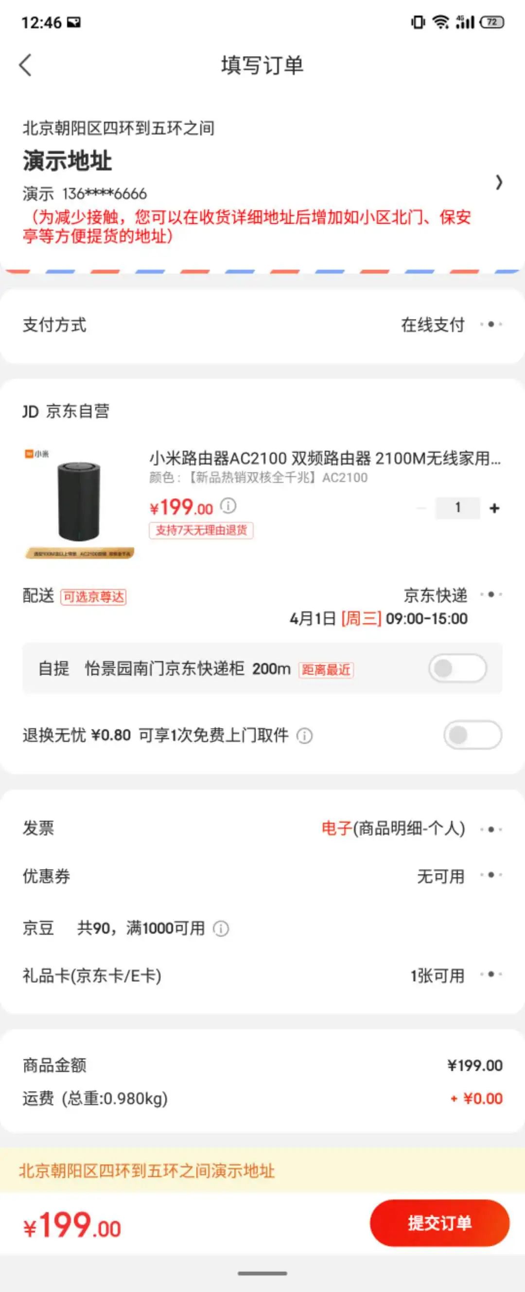 我们还是以「组合模式」中的“订单结算页面”为例,继续来看看某东的订单结算页面: