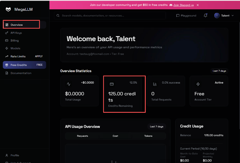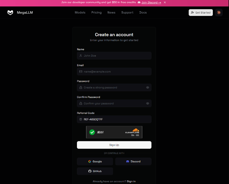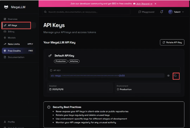 目前暂时发现一个可以短暂白嫖的渠道:MegaLLM。