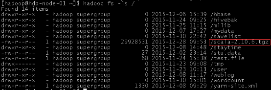 命令: hadoop fs -put ./ scala-2.10.6.tgz to /