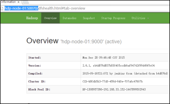 也可打开web控制台查看HDFS集群信息,在浏览器打开http://hdp-node-01:50070/