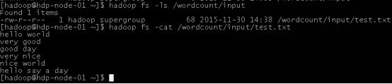 hadoop fs –put /home/hadoop/words.txt /wordcount/input