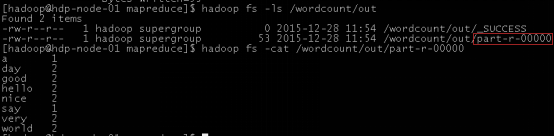 $ hadoop jar wordcount.jar cn.itcast.bigdata.mrsimple.WordCountDriver /wordcount/input /wordcount/out