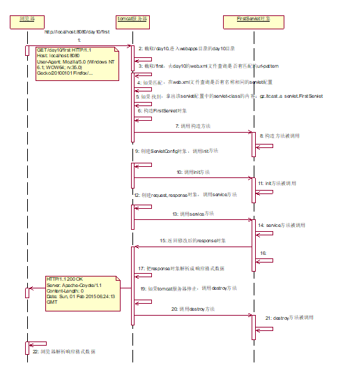 1)通过映射找到到servlet-class的内容,字符串: gz.itcast.a_servlet.FirstServlet